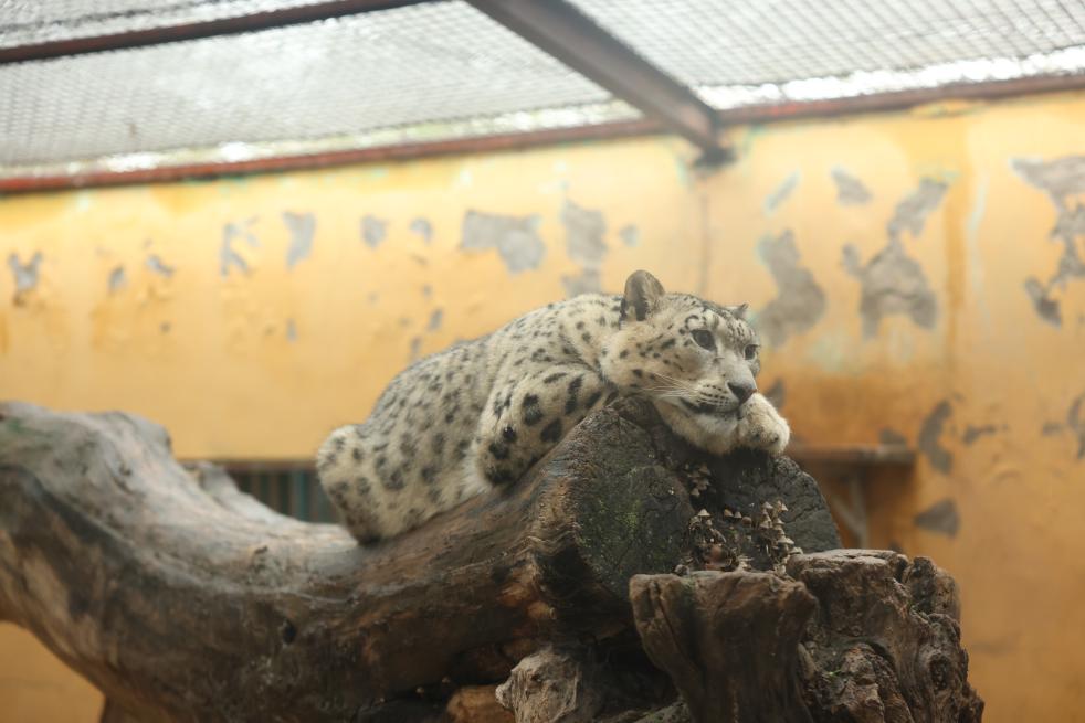 金秋時節(jié),走進青海省西寧野生動物園豹館,雪豹“凌霜”“大虎”正相互依偎;雪豹“凌夏”時而趴在橫木上休息,時而活躍地行走奔跑;雪豹“凌不服”冒著頭四處張望,警惕地觀察室外情況。