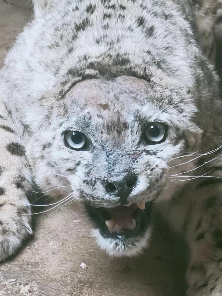 這是接受救護后的雪豹“凌不服”。(西寧市野生動物園供圖)
