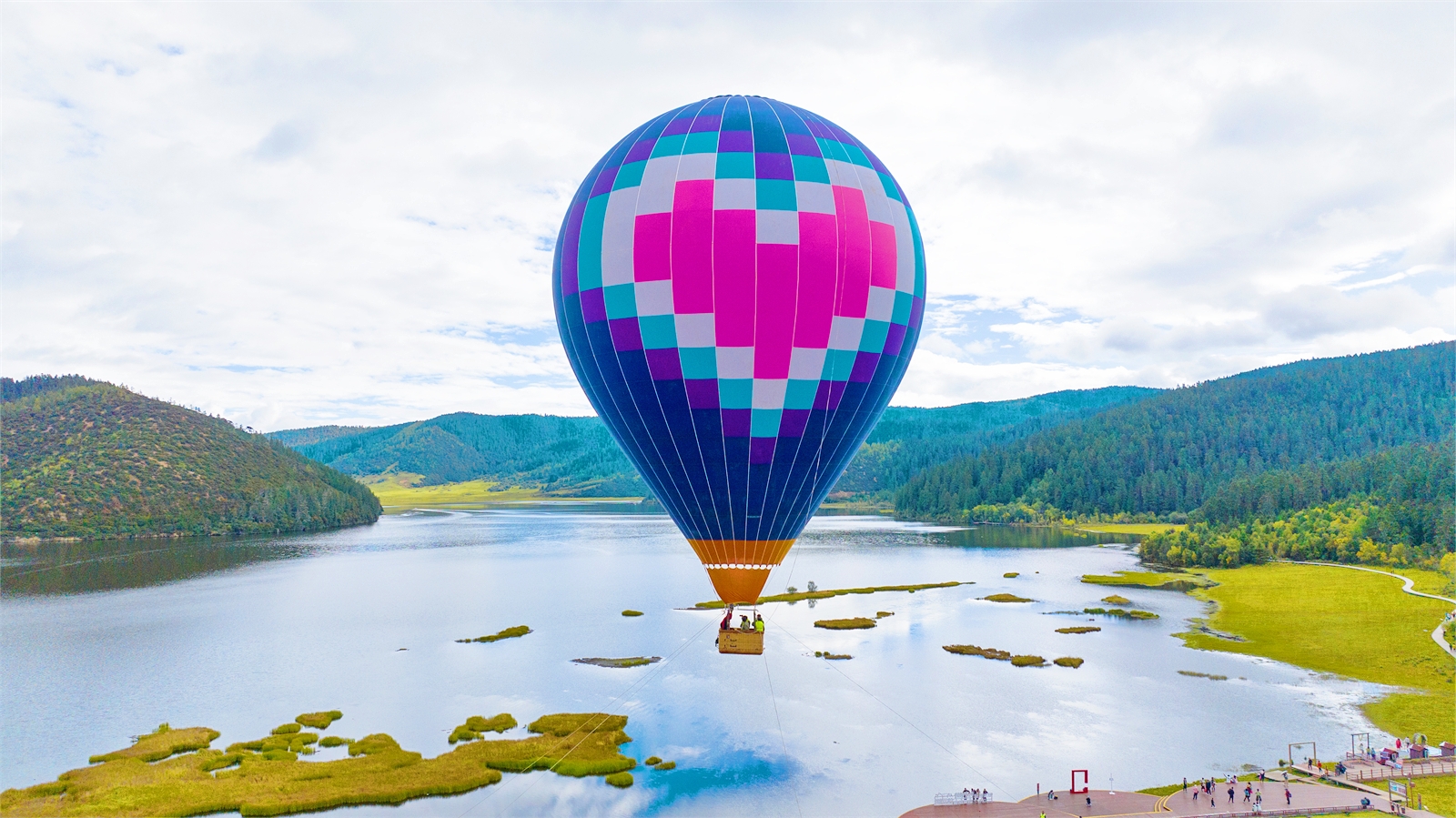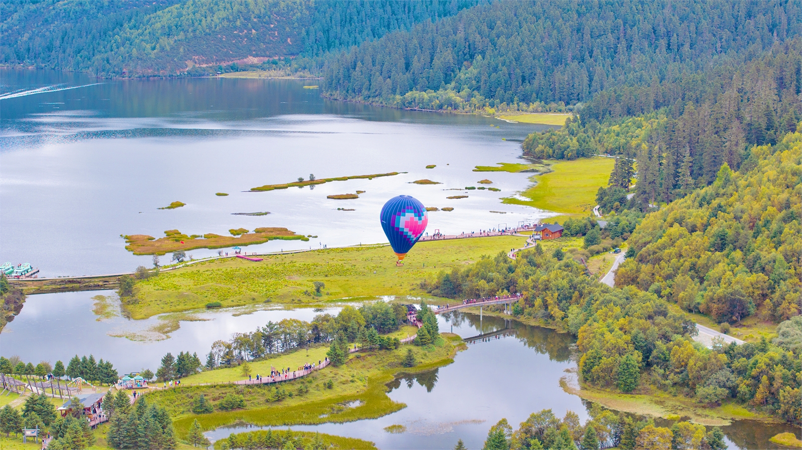 國(guó)慶假期期間,香格里拉普達(dá)措國(guó)家公園新增直升機(jī)和熱氣球低空觀光體驗(yàn)項(xiàng)目,讓游客從高空俯瞰神秘而壯麗的普達(dá)措公園美景。