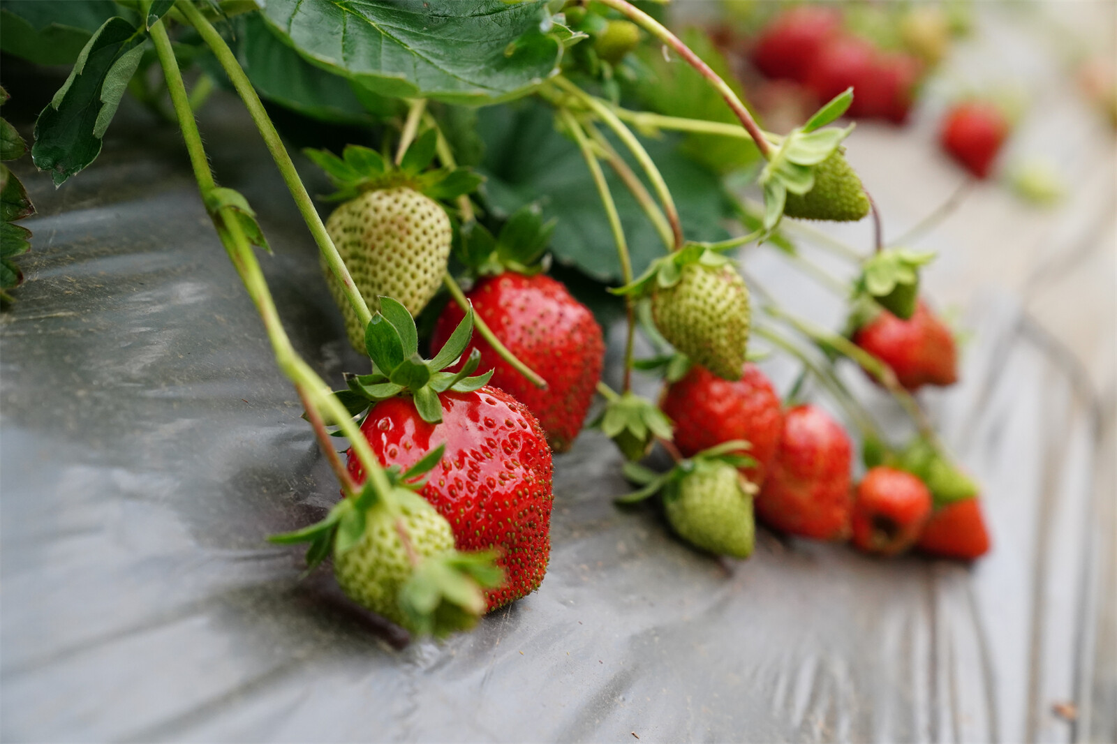 國(guó)慶中秋長(zhǎng)假,到城郊進(jìn)行采摘成為不少市民的選擇。在小中甸鎮(zhèn)聯(lián)合村的歡喜草莓采摘園大棚里,草莓已經(jīng)掛滿地頭,圓潤(rùn)飽滿的果子和綠葉相映成景。