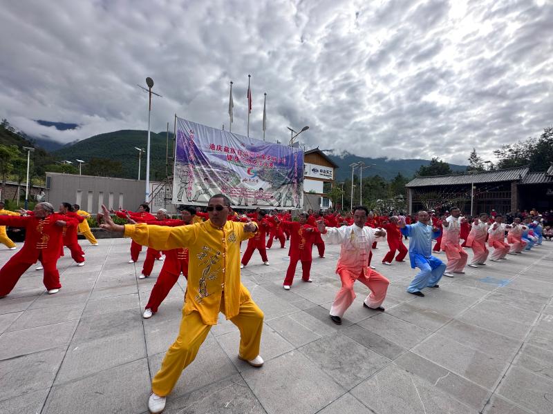 迪慶藏族自治州首屆美麗鄉(xiāng)村健身氣功交流比賽在香格里拉市金江鎮(zhèn)興隆村紅色研學(xué)基地開賽