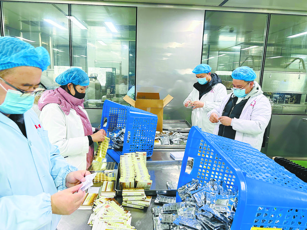 青海久美藏藥藥業(yè)有限公司車間內(nèi),工作人員準(zhǔn)確快速地將藥品裝盒封袋。青海久美藏藥藥業(yè)有限公司供圖