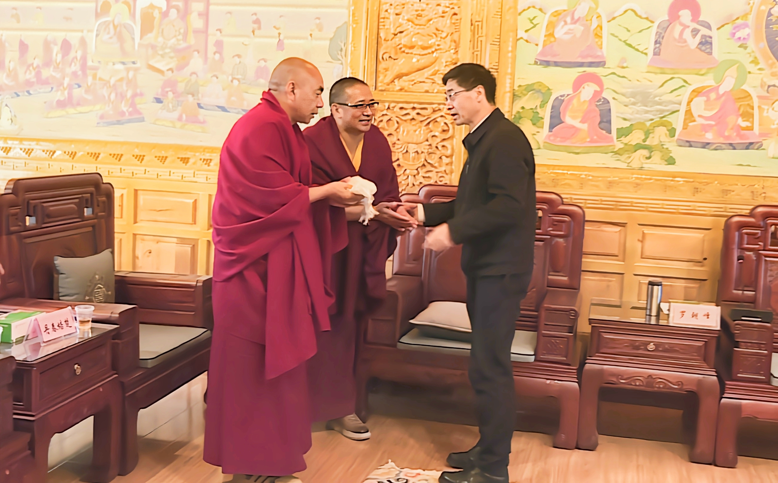 在松贊林寺,羅朝峰與宗教界代表人士深入交流座談,詳細了解僧人學修、生活等情況,面對面傾聽他們的心聲、訴求,引導(dǎo)僧人們從多年來國家面貌、人民生活發(fā)生的變化,松贊林寺基礎(chǔ)設(shè)施、僧人修行條件的變化中憶苦思甜,感念黨恩。希望他們珍惜和諧穩(wěn)定的大好局面和良好的修行生活條件,深入踐行習近平總書記提出的“政治上靠得住、宗教上有造詣、品德上能服眾、關(guān)鍵時起作用”政治要求,繼承和發(fā)揚愛國愛教的優(yōu)良傳統(tǒng),進一步鑄牢中華民族共同體意識。