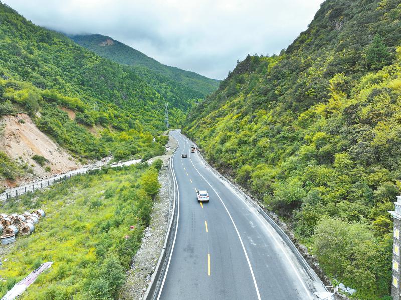 這樣的巧思,還體現(xiàn)在新都橋至雅江段的改造提升上。為了提升通行能力,本輪改造在有條件的地方增設(shè)了輔助通道。新都橋至雅江段的輔助通道是通過對既有公路進行改擴建實現(xiàn),但進入雅江縣城前的路段沿河而行,原路狹窄,如果加寬會侵擾河道,影響行洪安全。經(jīng)過多個方案的對比優(yōu)化,設(shè)計人員提升了這段路的設(shè)計等級,以橋梁和隧道為主要方式布線,并在輔助通道與國道318間增加了諸多橫向聯(lián)系,讓兩條路可以互相轉(zhuǎn)換。由此,形成了進入雅江縣的“雙通道”,到縣城的車輛通行國道318,不到縣城的車輛通過輔助通道快速過境。