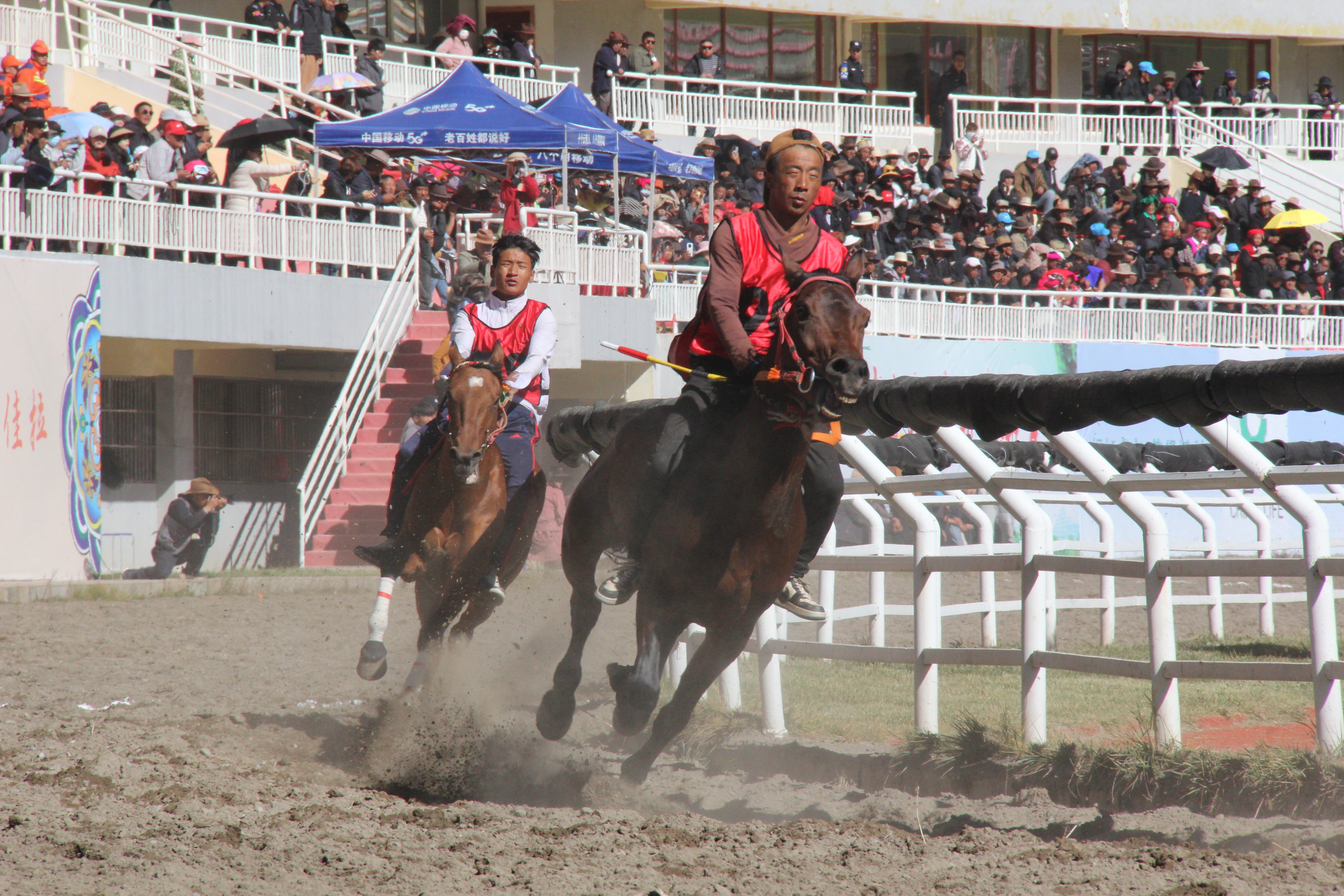 10月30日,首屆世界的“香格里拉”金秋賽馬活動(dòng)在香格里拉民族體育中心綜合體育場(chǎng)順利開賽,各組人馬上演“速度與激情”,賽事激烈。(王云川 楊濤 攝)