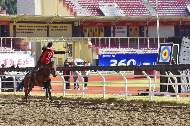 選手正在進(jìn)行跑馬射箭比賽。 (楊濤 王云川 攝)