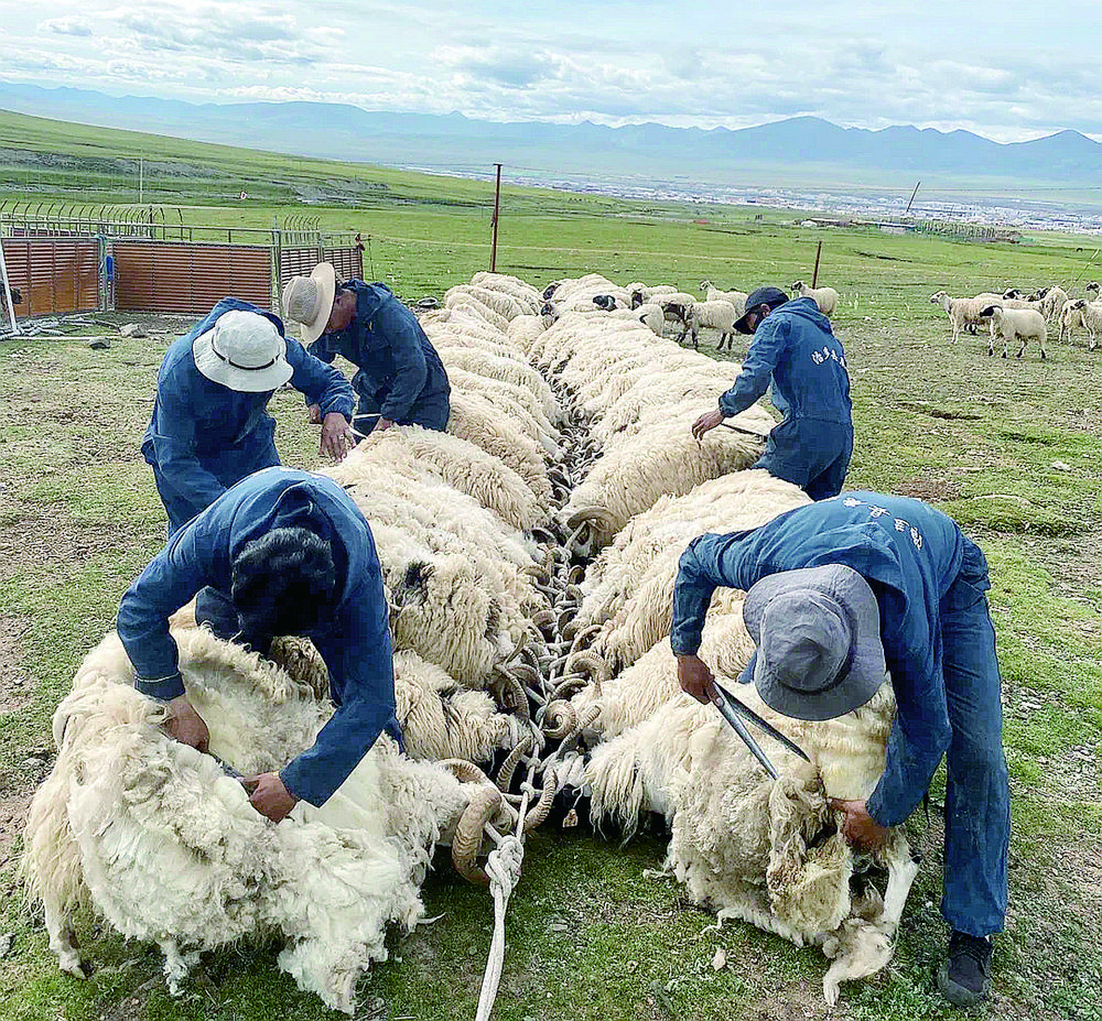 剪羊毛。治多縣國(guó)營(yíng)牧場(chǎng)暨鹿場(chǎng)供圖
