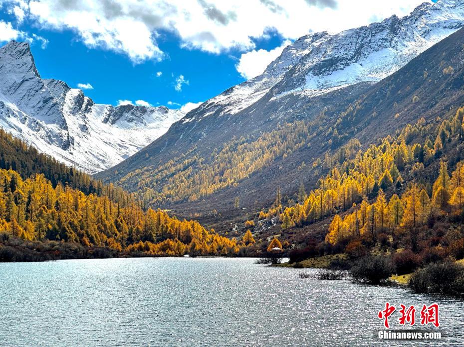 雪山邂逅彩林和海子美不勝收。陳邦亮 攝