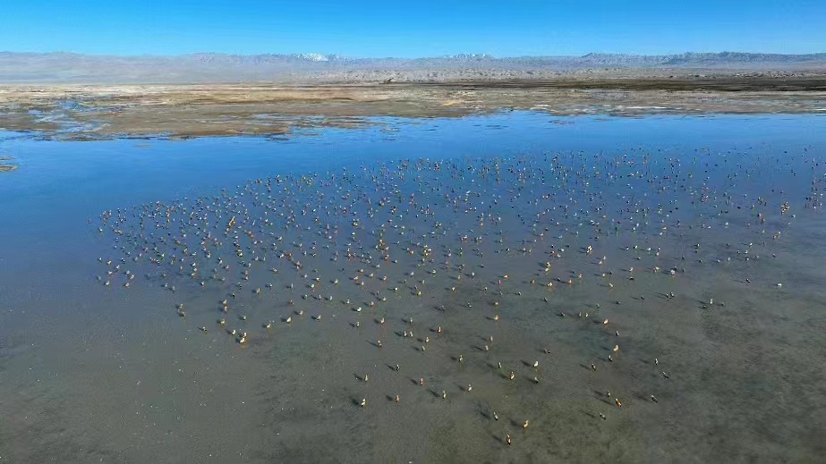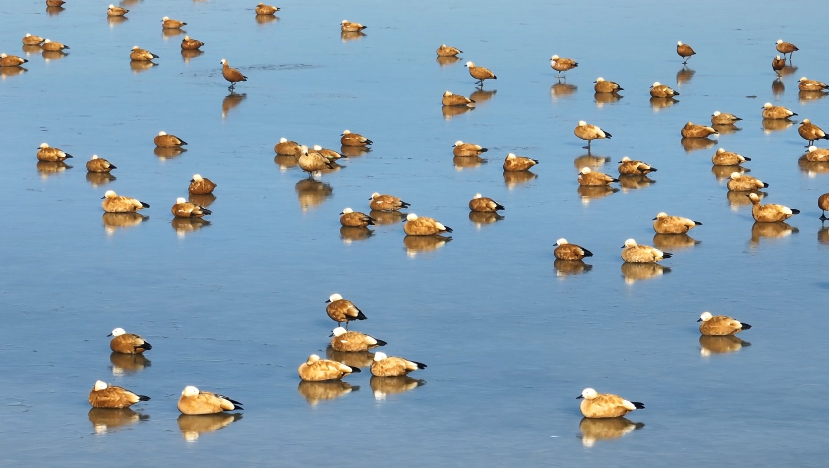 青海茫崖:數(shù)千只赤麻鴨在尕斯庫(kù)勒湖濕地休憩