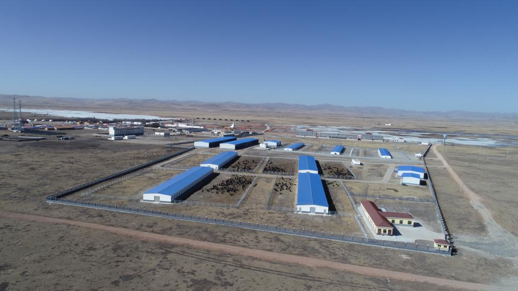 此為甘肅省甘南藏族自治州瑪曲縣馬場(chǎng)畜牧產(chǎn)業(yè)養(yǎng)殖基地。(無(wú)人機(jī)照片)(受訪者供圖)