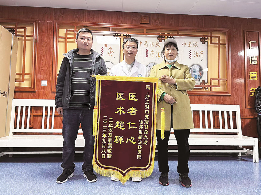 “除病痛醫(yī)術高超,保健康醫(yī)德高尚”“醫(yī)德高尚、醫(yī)術精湛”“善良的品德、精湛的醫(yī)技”……2023年2月,浙江省余杭區(qū)第二人民醫(yī)院麻醉醫(yī)生徐英俊赴九龍縣人民醫(yī)院,在海拔3000米的高原上開展醫(yī)療幫扶工作。短短幾個月,徐英俊的辦公室里不僅掛滿了患者送來的錦旗,他也成了甘孜群眾口中的“浙江專家”。