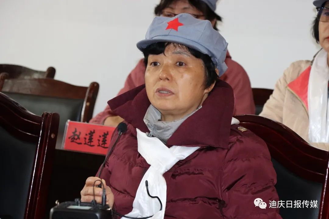 甘祖昌之女甘仁榮回憶起父親,眼中噙滿淚水。其父親甘祖昌,中國人民解放軍少將軍銜,被稱為“將軍農(nóng)民”。1926年參加村農(nóng)民協(xié)會(huì),1927年加入中國共產(chǎn)黨,翌年參加中國工農(nóng)紅軍。在革命生涯中,歷任湘贛軍區(qū)紅軍兵工廠副科長、八路軍第三五九旅供給部軍需科科長、三五九旅供給部副部長、晉綏軍區(qū)三五九旅供給部部長、西北野戰(zhàn)軍第二縱隊(duì)后勤部部長、第一野戰(zhàn)軍二軍后勤部部長等職。先后參加了國內(nèi)革命戰(zhàn)爭、抗日戰(zhàn)爭、解放戰(zhàn)爭,為了黨和人民的事業(yè)出生入死、數(shù)次負(fù)傷 。中華人民共和國成立后,甘祖昌歷任新疆軍區(qū)后勤部副部長兼供給處處長,兼財(cái)務(wù)處處長,新疆軍區(qū)后勤部部長。1955年被授予少將軍銜,榮獲八一勛章、獨(dú)立自由勛章、解放勛章等 。1957年,甘祖昌在辭去新疆軍區(qū)后勤部部長的職務(wù)后,帶著家人回到闊別20多年的家鄉(xiāng),從此開始了29年的“農(nóng)民生涯”。從江西到延安再到新疆,甘祖昌將人生中三分之二的時(shí)光都奉獻(xiàn)給了國家獨(dú)立和民族解放的革命斗爭中。其母親龔全珍是開國少將甘祖昌夫人、江西省萍鄉(xiāng)市南陂小學(xué)原校長。1957年8月,龔全珍隨丈夫甘祖昌回家鄉(xiāng)江西省蓮花縣務(wù)農(nóng)并一直從事鄉(xiāng)村教師工作。離休后,又扶貧助學(xué),開辦“龔全珍工作室”服務(wù)社區(qū)、群眾。著有紀(jì)實(shí)作品《我和老伴甘祖昌》。習(xí)近平總書記先后兩次親切接見龔全珍,親切地稱她為“老阿姨”。龔全珍曾榮獲第四屆全國道德模范稱號、“感動(dòng)中國”2013年度十大人物 、全國優(yōu)秀共產(chǎn)黨員 、“感動(dòng)江西十大教育年度人物”“全國模范退役軍人”等稱號。甘仁榮在座談會(huì)上談及父母從小對子女嚴(yán)苛的家教,從飯桌上絕不能浪費(fèi)一粒糧的教育再到了父母離開城市回農(nóng)村搞建設(shè)的過往,從幼兒的少不更事,到如今自己親身來到迪慶,感受父輩走過的路,真切地體會(huì)到了父輩身上不畏艱險(xiǎn)、堅(jiān)韌不拔、頑強(qiáng)拼搏、攻堅(jiān)克難的奮斗精神和為黨和人民的事業(yè)“鞠躬盡瘁、死而后已”的偉大獻(xiàn)身精神。現(xiàn)場氣氛莊嚴(yán)肅穆,令人感動(dòng)。