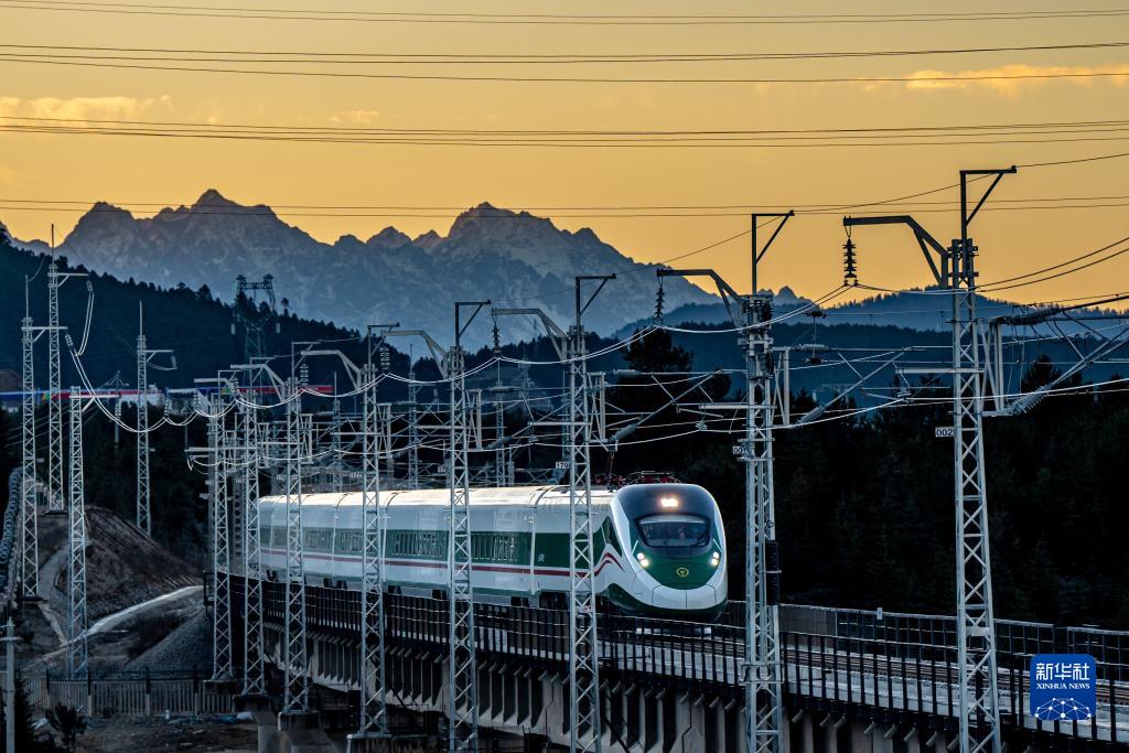 11月26日,列車行駛在麗香鐵路線上。新華社記者 胡超 攝