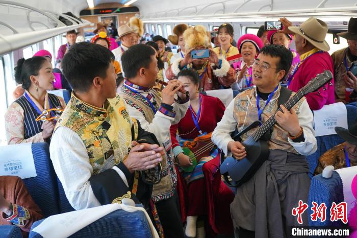 11月26日,麗江至香格里拉鐵路正式建成通車。圖為乘客載歌載舞慶祝鐵路通車。中新社記者 劉冉陽 攝