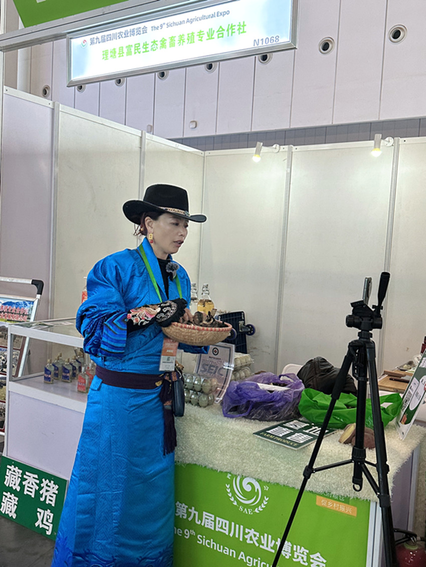 梅朵的話語言簡意賅,但透露出藏香豬養(yǎng)殖經(jīng)歷的艱難曲折。好在皇天不負(fù)有心人,在多方學(xué)習(xí)探索后,梅朵決定在喂養(yǎng)藏香豬的飼料中添加金錢草、板藍(lán)根、黃芪等中草藥,效果顯而易見,自2019年暴發(fā)豬瘟后,截至目前,理塘縣富民生態(tài)禽畜養(yǎng)殖專業(yè)合作社未發(fā)生一起群體病癥,藏香豬養(yǎng)殖如藏香雞養(yǎng)殖一樣,緩緩步入正軌。目前藏香豬養(yǎng)殖通過線上下訂單、下線售賣點直營等方式,每年凈收益達(dá)80余萬元。