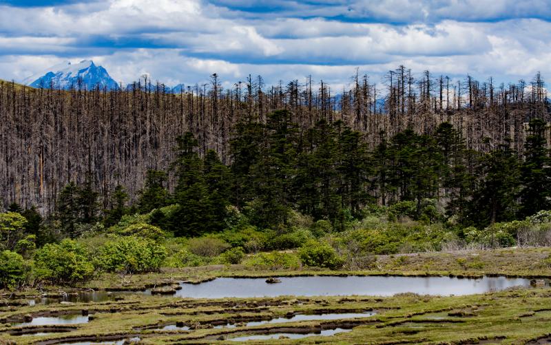 碧沽天池周圍30多平方公里的地方被原始森林覆蓋,樹(shù)木高大挺拔,多為云杉和冷杉。還有綠茵茵的牧場(chǎng)、安靜的牛羊群,以及動(dòng)人心魄的杜鵑花。
