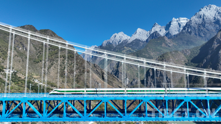 圖為“復興號”動車行駛在金沙江特大橋上 中國鐵路昆明局集團有限公司供圖