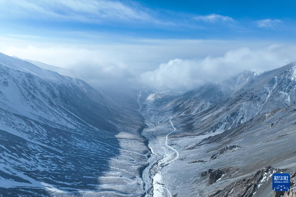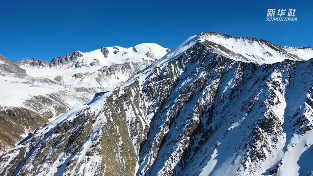 這是1月23日在青海省海北藏族自治州門源回族自治縣境內(nèi)拍攝的崗什卡雪峰(無人機(jī)照片)。新華社記者 張龍 攝