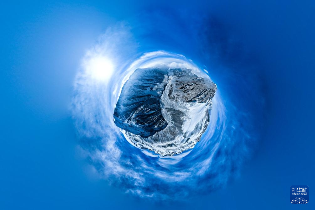 這是1月23日在青海省海北藏族自治州門源回族自治縣境內(nèi)拍攝的崗什卡雪峰(無人機(jī)全景照片)。新華社記者 張龍 攝