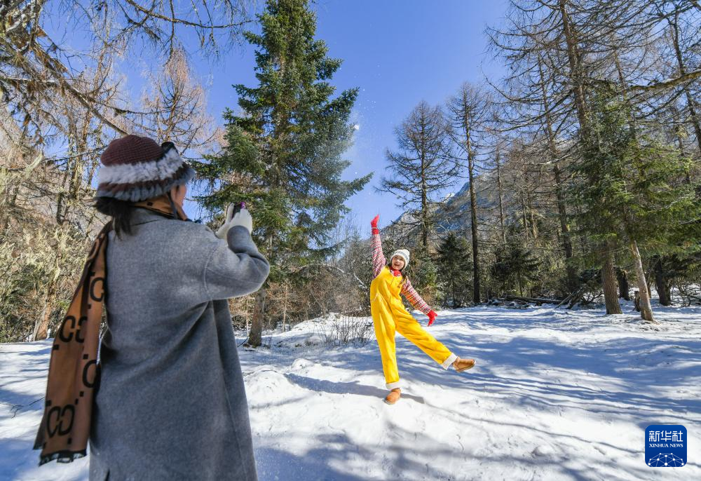 1月25日,游客在畢棚溝風(fēng)景區(qū)拍照。新華社記者 王曦 攝