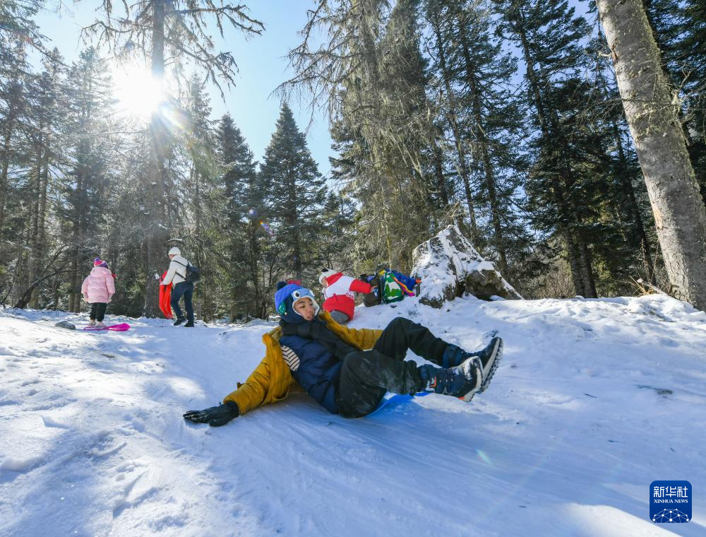 1月25日,小游客在畢棚溝風(fēng)景區(qū)玩耍。新華社記者 王曦 攝