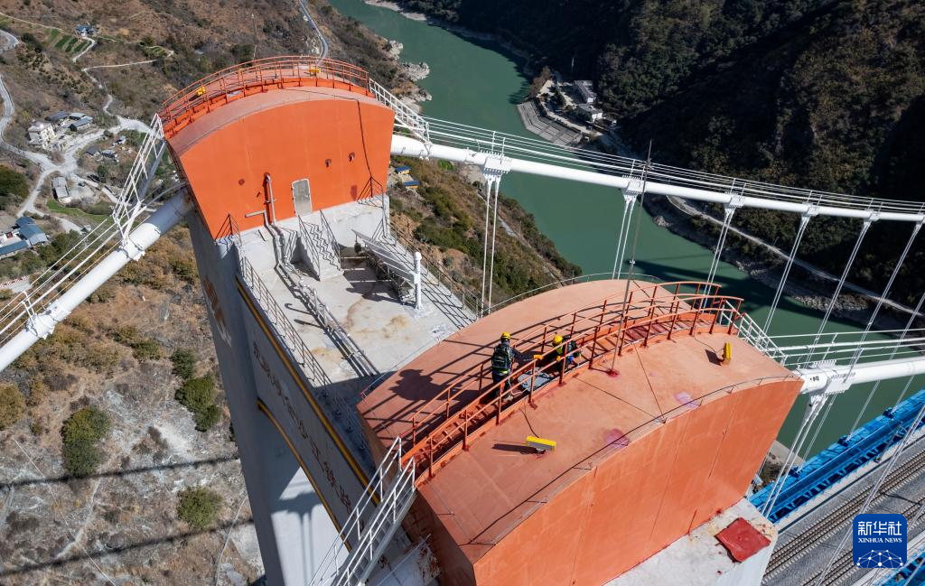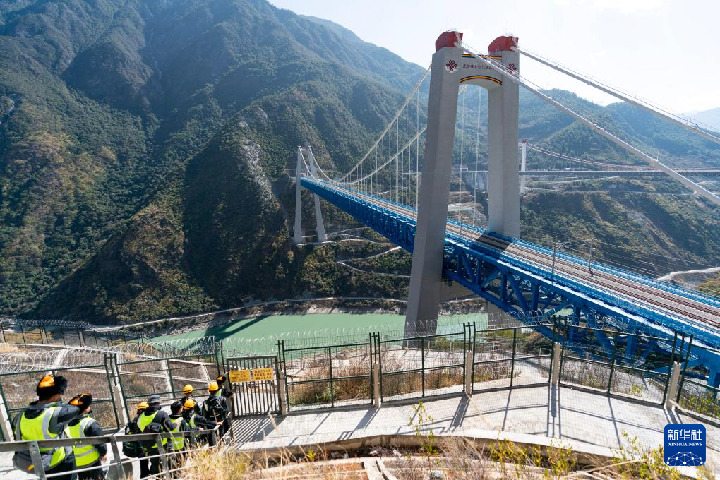 云南麗江至香格里拉鐵路(麗香鐵路)即將迎來開通后的首個春運(yùn),為確保旅客平安出行,國鐵昆明局廣通工電段新尚綜合維修工區(qū)班對虎跳峽金沙江鐵路大橋進(jìn)行全面“體檢”。