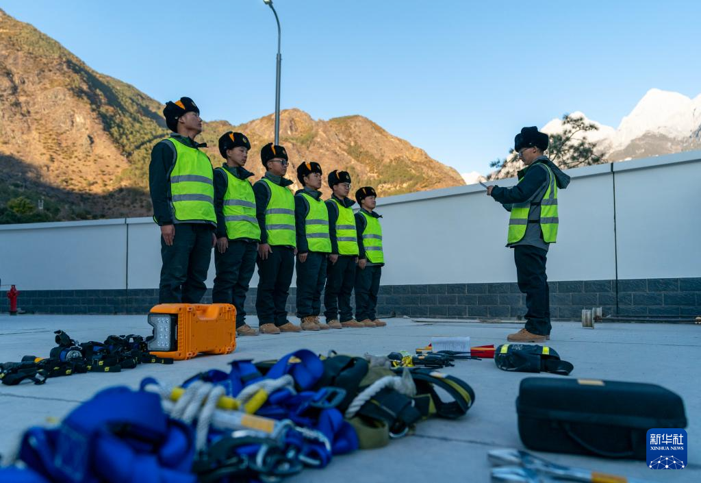 1月24日,工區(qū)班長楊應(yīng)文(右一)在清點(diǎn)人數(shù)并強(qiáng)調(diào)注意事項。新華社記者 陳欣波 攝