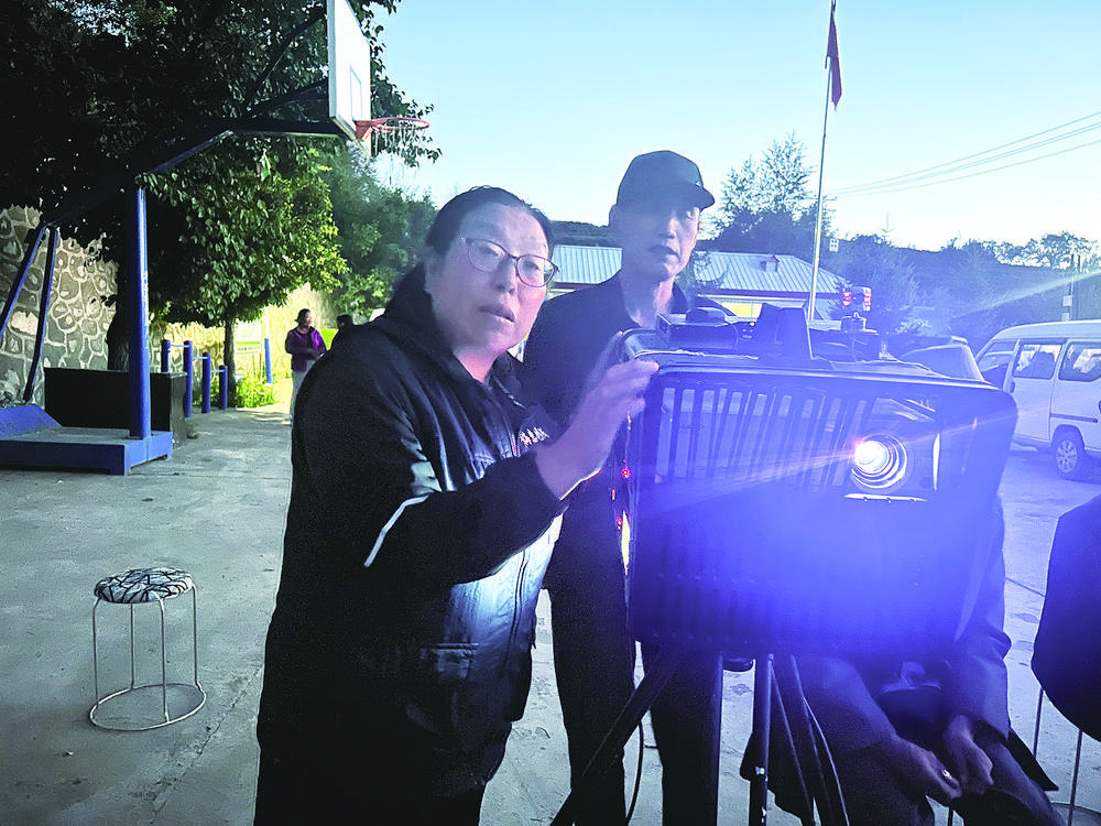 1月24日,電影放映員東德布在為牧民放電影。薛蒂 攝