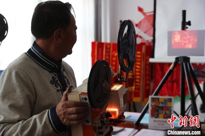 1月24日,電影放映員東德布在展示8.75毫米二型電影放映機(jī)。薛蒂 攝