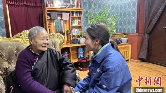 圖為扎西拉毛(右)在結(jié)拉村老人家中講解安全用電知識,主動咨詢用電需求。普布永措 攝