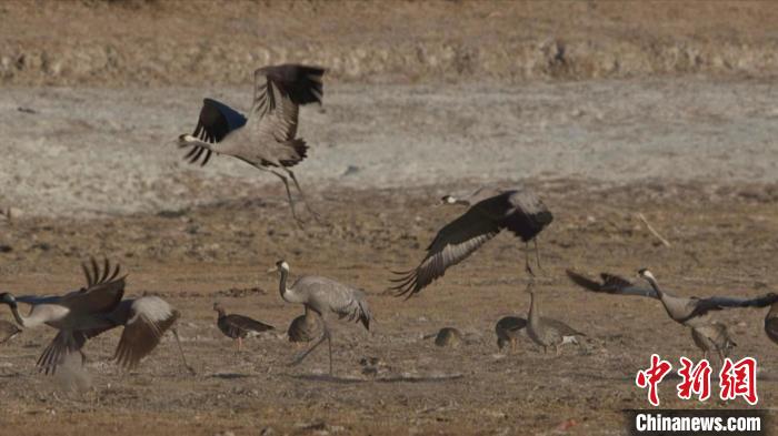 珍稀鳥類黑頸鶴、灰鶴現(xiàn)身青海格爾木