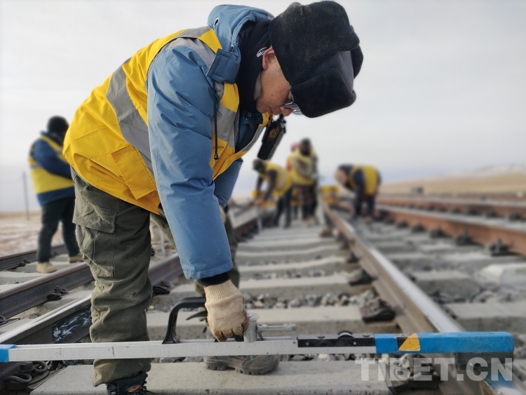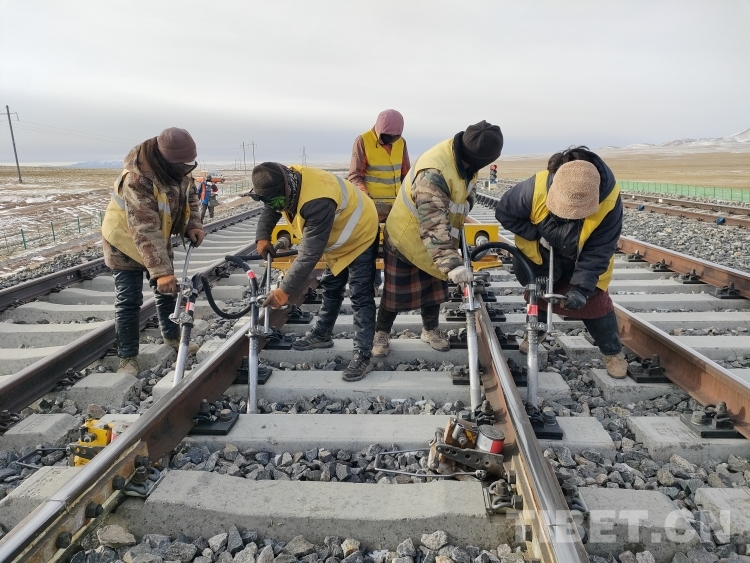 中國西藏網(wǎng)訊 2月9日,大年三十,中國鐵路青藏集團有限公司格爾木工務(wù)段沱沱河線路車間通天河線路工區(qū)的10名職工驅(qū)車1小時來到青藏鐵路塘崗站,對鐵路線路設(shè)備病害進行整治。