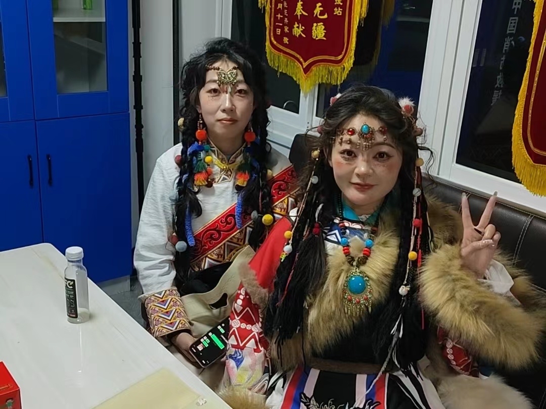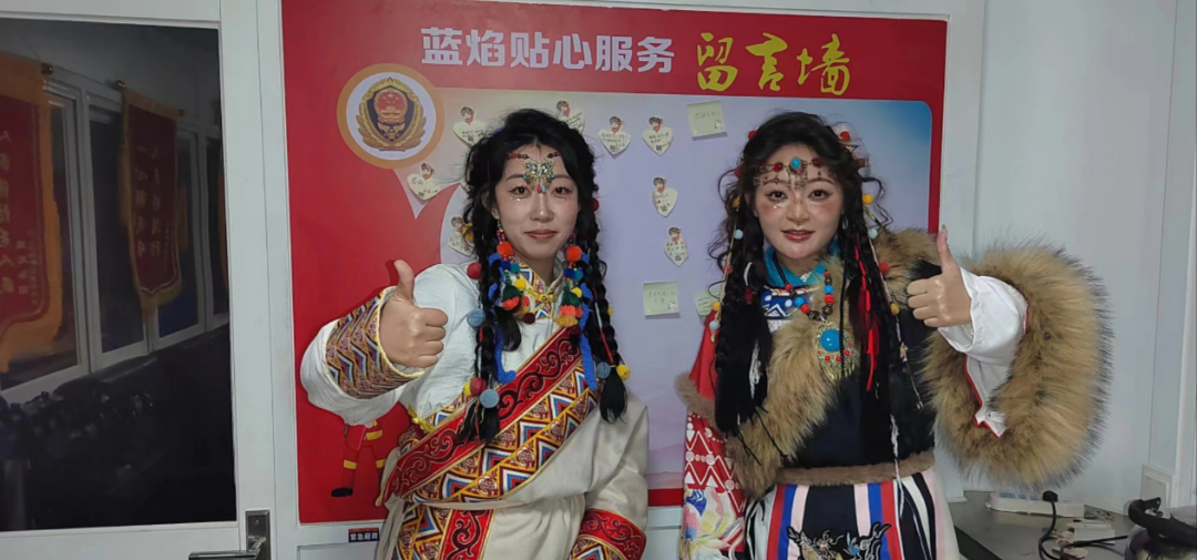 1月30日下午17時20分許,服務站迎來兩位身著藏式服裝的“卓瑪”。經隊員了解得知,兩位“卓瑪”是外地過來旅游的,準備到寺院內部去旅拍,手上的包實在太重了,希望可以把包寄存在服務站內。隊員立即接過她們手中的包將其安置好,并細心問到包內是否有貴重物品之類的,確定好包內的物品后便向他們說道:“兩位小姐姐,你們就安心去拍攝吧,不著急,拍完后回到這里取你們的東西就可以了,我們給你們守著?!彪S后兩位來自遠方的“卓瑪”便開始了他們愉快的旅拍。其實大家都知道,這場旅拍沒有1個小時是不可能結束的,而這個點也快接近了隊員們歸隊吃晚飯的時間點了,但是隊員們沒有考慮吃飯的事,他們想的只是為素不相識的遠方朋友盡一份義務,讓他們的旅拍之行無后顧之憂。19時30分左右,兩位“卓瑪”回到了服務站,隊員隨即邀請他們坐下來休息會喝杯熱水,夜晚天氣較冷讓他們先烤會火暖一下身子再出發(fā)。