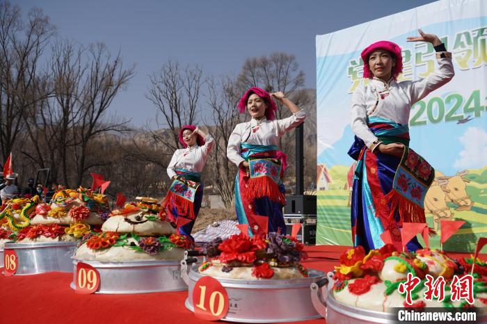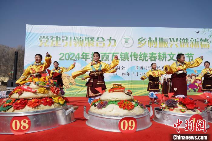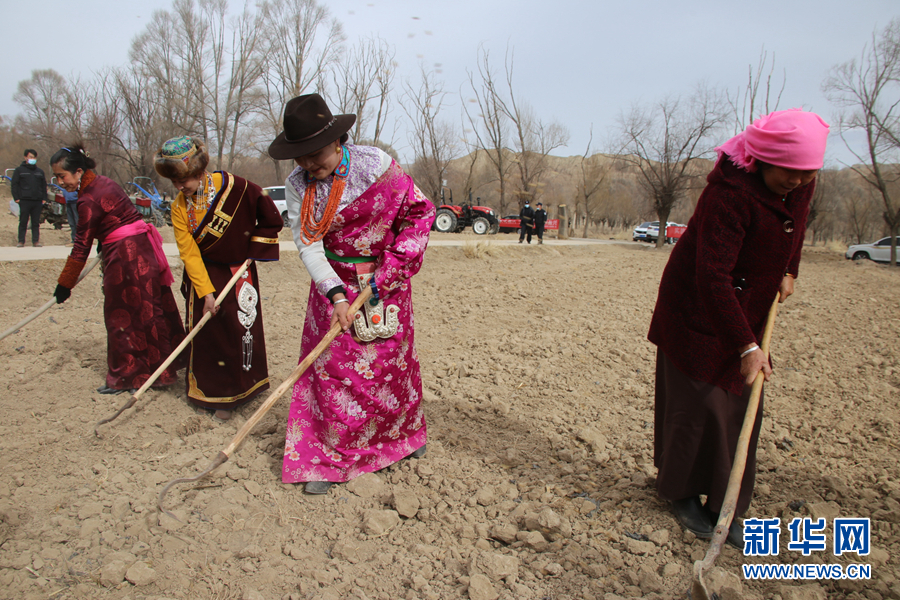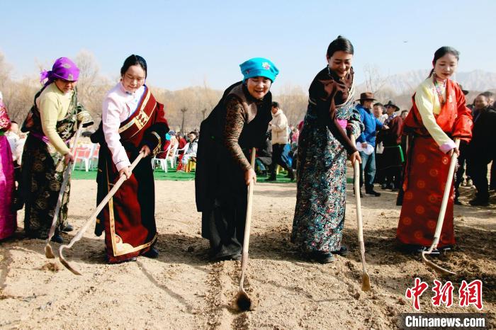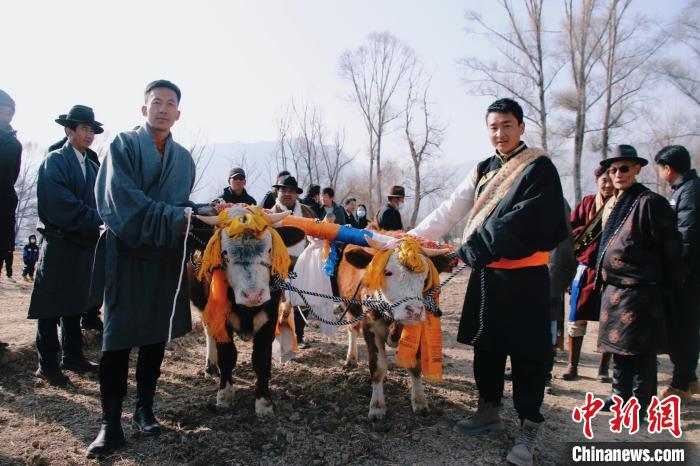 3月6日,青海省海南藏族自治州貴德縣拉西瓦鎮(zhèn)舉辦春耕文化節(jié)活動。該鎮(zhèn)十個村的村民身穿節(jié)日盛裝,手捧制作精美、色彩鮮艷,寓意風調(diào)雨順、五谷豐登的“彤糕”來到田間,以“二牛抬杠”的傳統(tǒng)方式開啟今春“第一犁”。