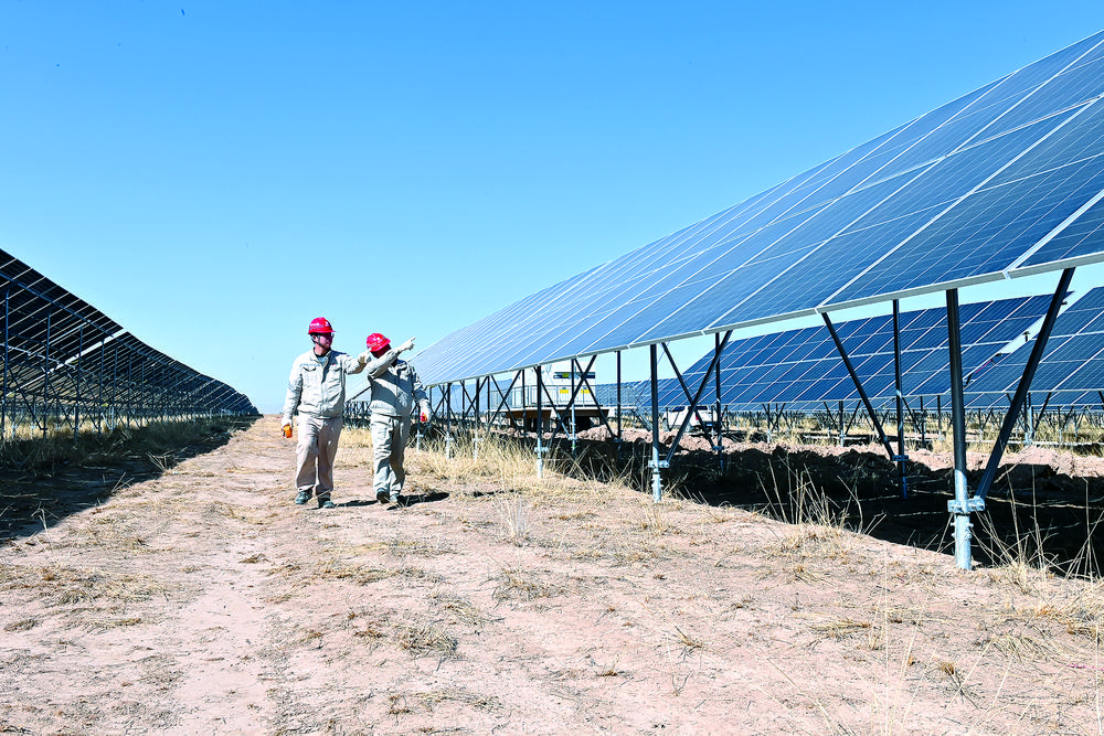 運維員在光伏項目現(xiàn)場進行定期巡檢工作。陸廣濤 攝