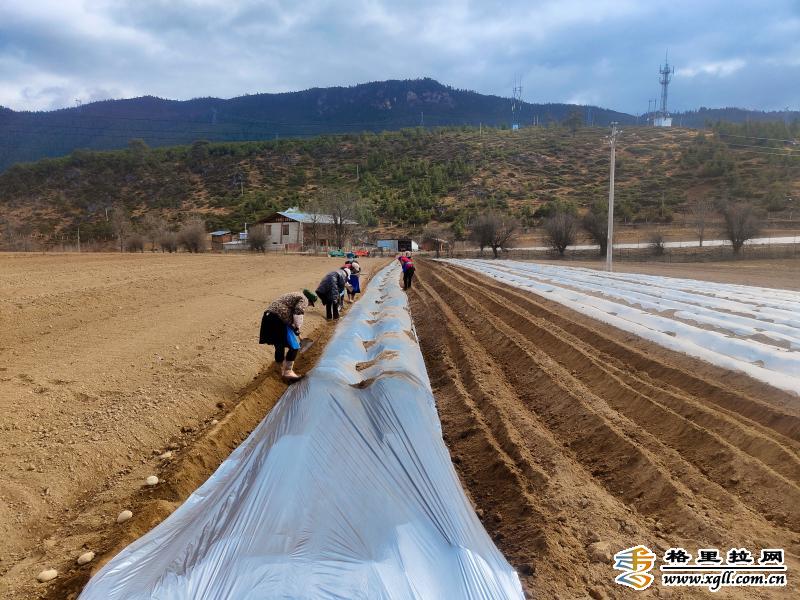 香格里拉市小中甸鎮(zhèn)和平村村民為土地覆膜