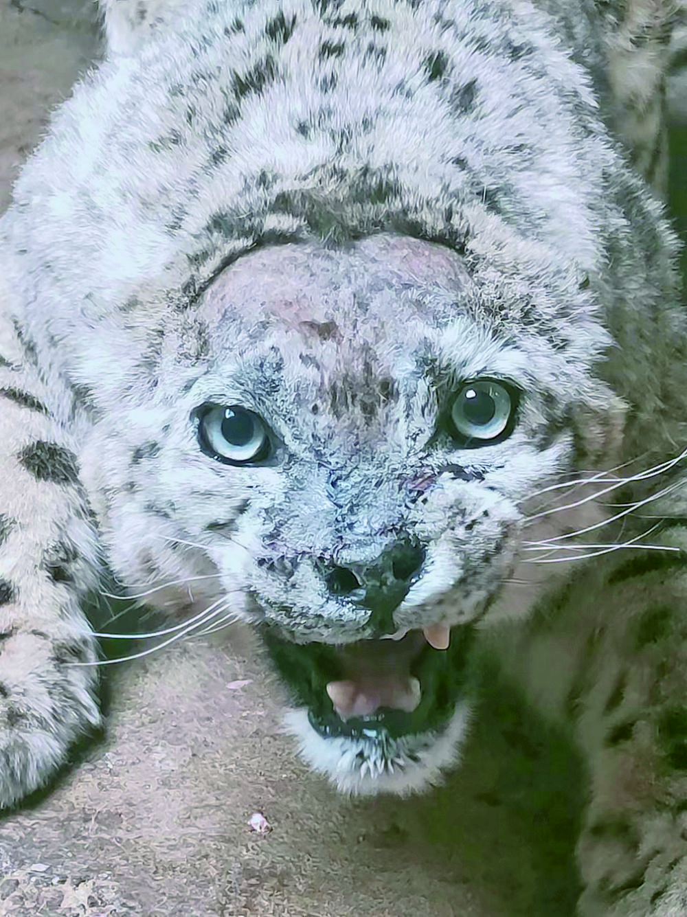 “凌寒”是一只老年雄性雪豹,被送來時雙目失明,其右眼患有嚴重的白內障,左眼是眼角膜穿孔虹膜穿出,養(yǎng)了10個月后,齊新章與團隊商議,決定為它開展手術治療。