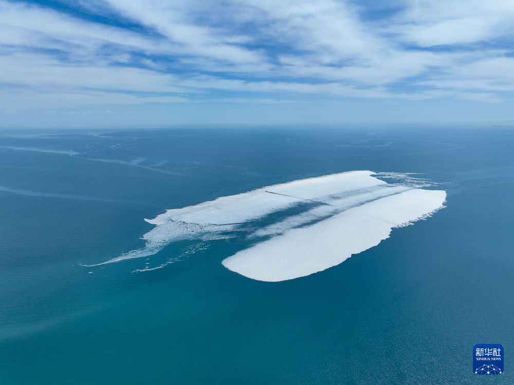 這是4月11日在青海湖拍攝的部分未融化的湖冰(無人機照片)。新華社記者 張龍 攝