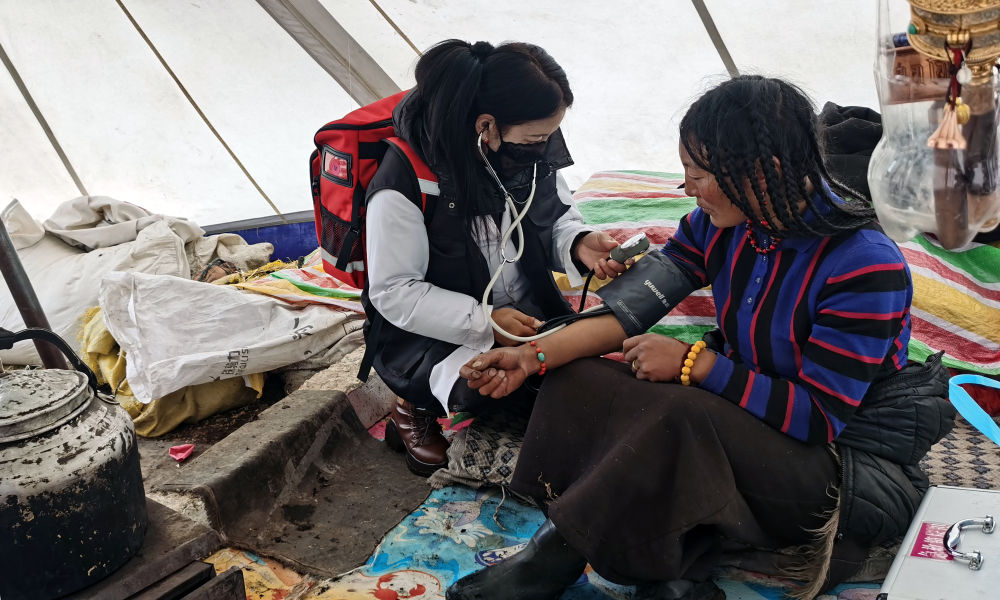 理塘縣村戈鄉(xiāng)中心衛(wèi)生院的家庭醫(yī)生團隊前往遠牧區(qū)為牧民送醫(yī)送藥上門。(受訪者供圖)