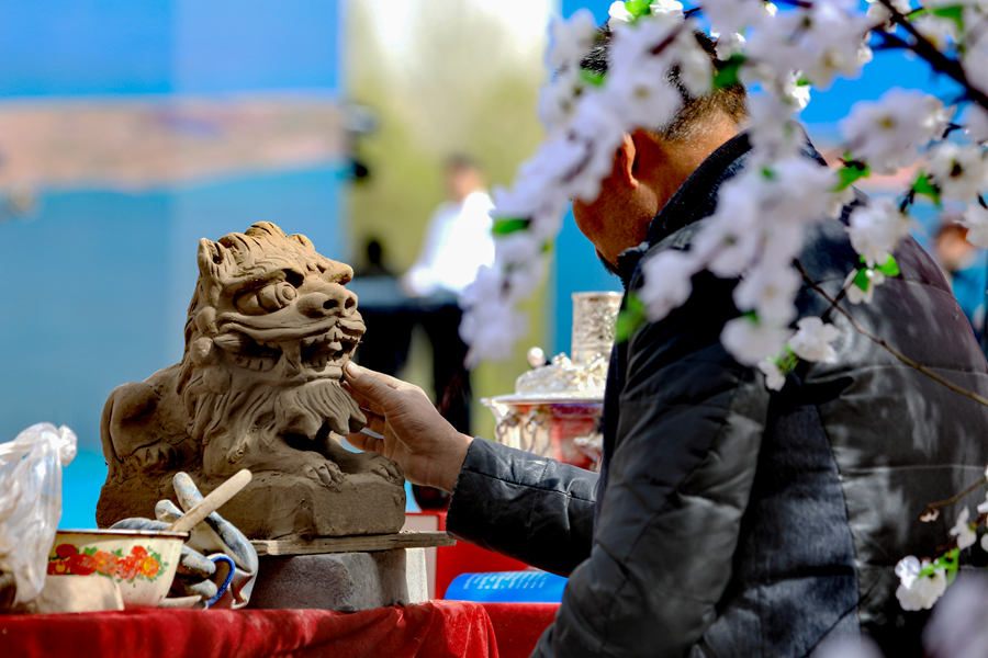 活動現(xiàn)場,手藝人正在制作泥雕。新華網(wǎng) 黃開森 攝