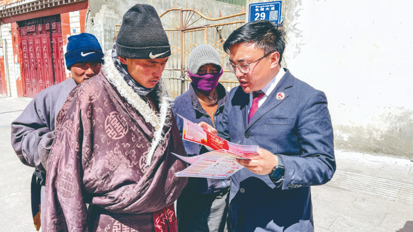 活動中,該院首先召集了色須鎮(zhèn)社區(qū)干群在社區(qū)黨員活動室開展法治宣講活動,雙語宣講員重點圍繞檢察院職能職責(zé)、《中華人民共和國國家安全法》《中華人民共和國反間諜法》《中華人民共和國網(wǎng)絡(luò)安全法》《中華人民共和國個人信息保護法》等相關(guān)法律,并結(jié)合真實案例向群眾釋法說理,號召群眾牢固樹立總體國家安全觀,切實提高全民共同維護國家安全的責(zé)任感。隨后,檢察干警來到色須鎮(zhèn)商業(yè)街向過往群眾發(fā)放涉及國家安全方面的宣傳手冊和宣傳單,此次普法宣傳活動,共計發(fā)放宣傳手冊、宣傳單100余份。