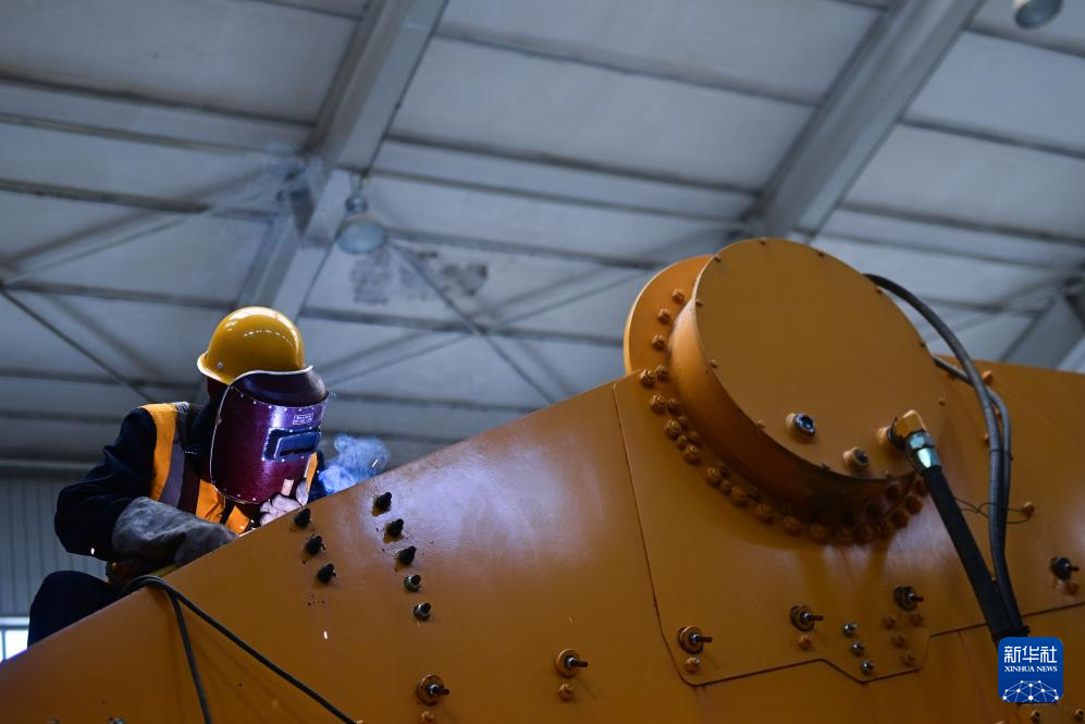 4月25日,中國鐵路青藏集團有限公司西寧工務機械段職工在焊接振動篩。新華社記者 張龍 攝
