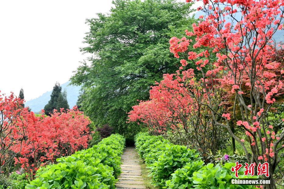 圖為紅色的杜鵑花點(diǎn)綴綠林間,美不勝收。伍排勇 攝