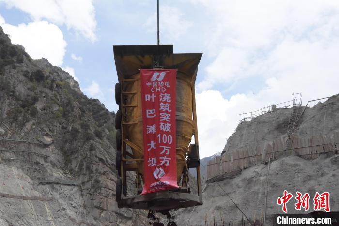 葉巴灘水電站大壩混凝土澆筑量突破100萬立方米。華電金沙江上游開發(fā)有限公司葉巴灘分公司供圖