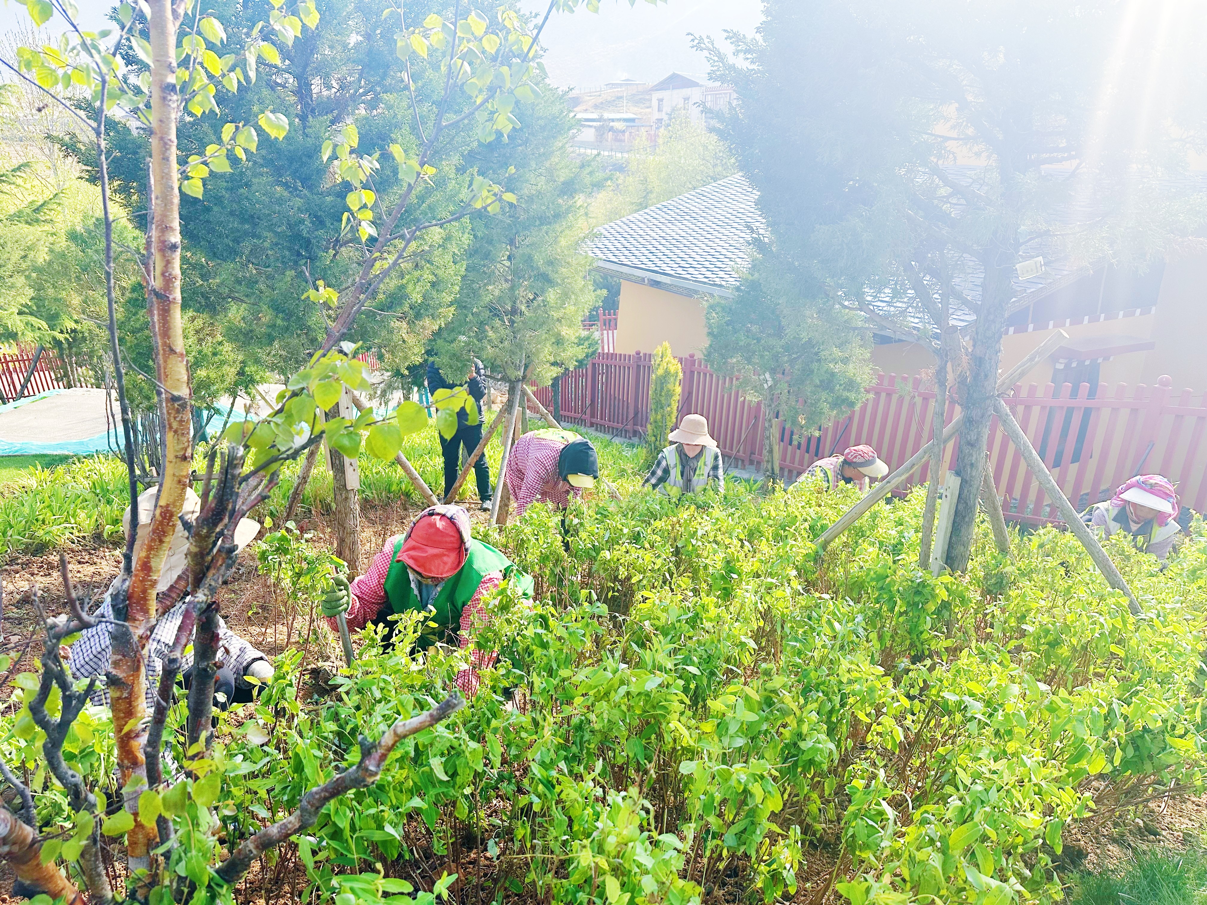 當(dāng)記者走近拉姆央措湖觀景臺(tái)附近,綠化養(yǎng)護(hù)工人們穿梭其間,他們或蹲或站,有的正對(duì)樹(shù)苗進(jìn)行補(bǔ)種,有的忙著清理灌木叢中的雜草,還有的正在對(duì)綠化苗木進(jìn)行全面的澆灌,到處一派繁忙景象。