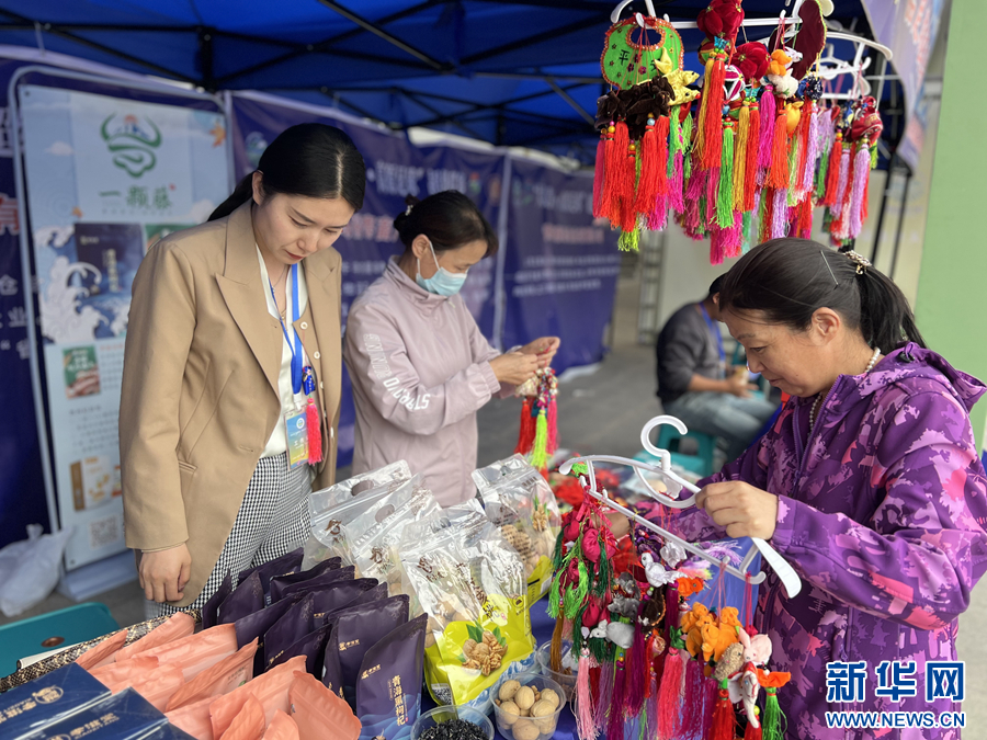 農(nóng)畜產(chǎn)品展示區(qū)的青海特色產(chǎn)品。新華網(wǎng) 魚(yú)昊 攝