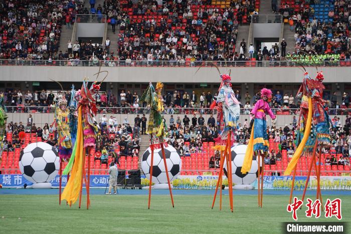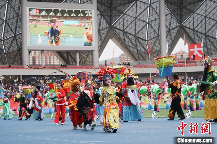 圖為開幕式現(xiàn)場社火高蹺進(jìn)行表演。馬銘言 攝