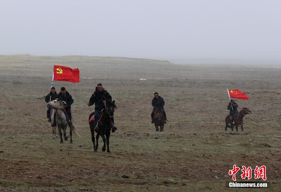 6月3日,在青海省果洛藏族自治州瑪多縣花石峽鎮(zhèn),瑪多縣人民法院“馬背法庭”的法官頂風前往牧民家中進行訴前調解。薛蒂 攝