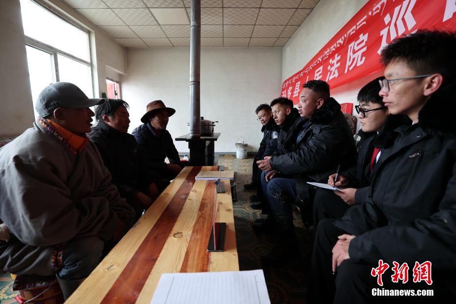 6月3日,在青海省果洛藏族自治州瑪多縣花石峽鎮(zhèn),瑪多縣人民法院“馬背法庭”的法官在牧民家中進行訴前調解。薛蒂 攝