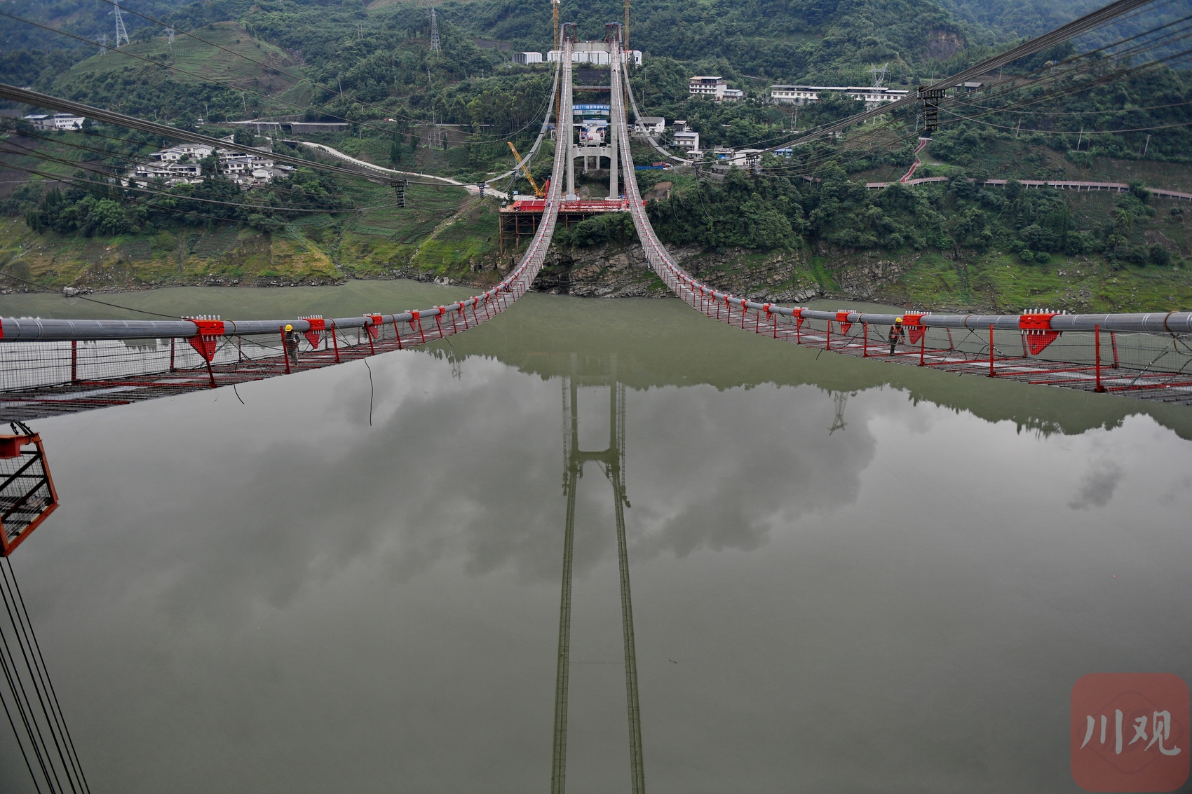 四川省阿壩州第一座懸索橋初展雄姿